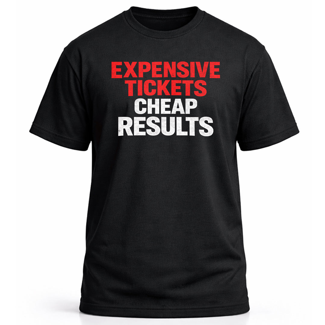 Say it without saying too much. The “Expensive Seats. Cheap Results.” tee speaks for every fan who shows up, pays up, and still leaves shaking their head.